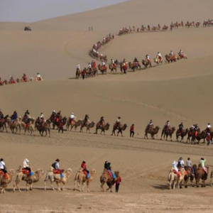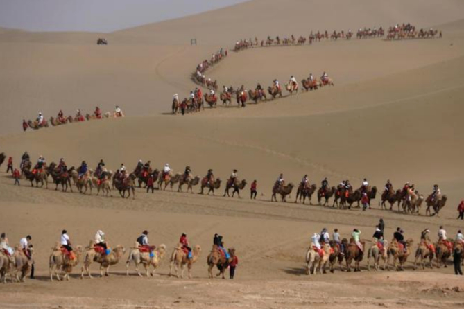 除此外,还有淄博烧烤一串难求,甘肃敦煌鸣沙山的骆驼队堵成了超市鸡蛋打折的名场面。