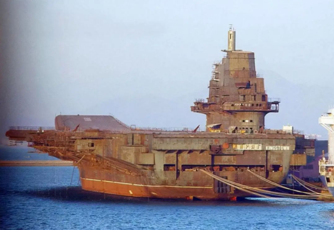 这艘航母,本在乌克兰境内的黑海造船厂建造,但由于苏联解体,导致项目中断,只完成了68%。