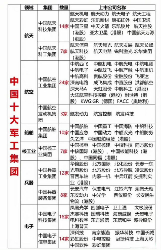而为了增加这部分“内容”,则意味着中国船舶、兵器、航空、航天、核工业,以及半导体产业,需要在背后多多“努力”。