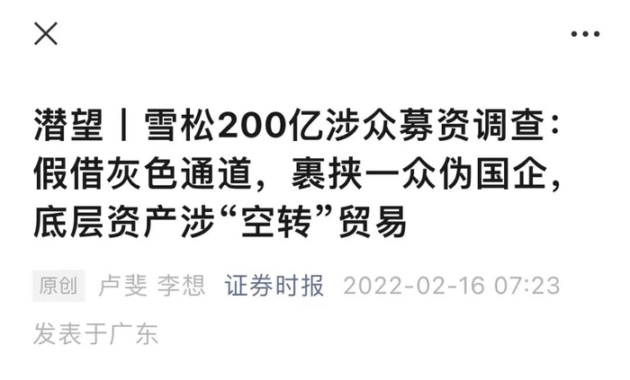 5月7日,广州黄埔公安发布通告称,因涉嫌非法吸收公众存款,已对雪松控股集团有限公司(简称:雪松控股)下属的广东圆方投资有限公司(简称:圆方投资)等立案查处,主要犯罪嫌疑人张某等人已被公安机关采取刑事强制措施。