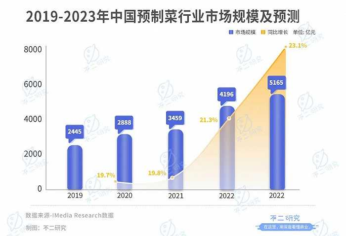 据iMedia Research数据显示,2021年中国预制菜行业规模预估为3459亿元,同比增长19.77%;预计未来将保持20%左右的增长率。据山西证券,未来3-5年预制菜行业有望成为万亿餐饮市场。