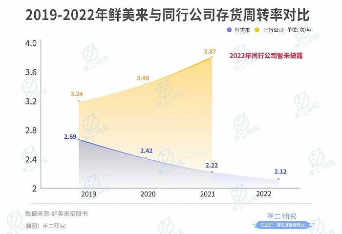 招股书显示,2019-2022年,鲜美来的存货周转率分别为 2.69次/年、2.42次/年、 2.22次/年和2.12次/年,2019-2021年行业平均存货周转率分别为3.24次/年、3.48次/年和3.87次/年。同行业其他公司的产品结构更加丰富,季节性特征弱于水产品,采购与销售关联更为紧密,因而存货周转较快。