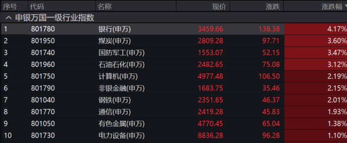 此外,中信银行亦放量涨停,3月份以来,累计涨幅超过50%,距2015年历史高点仅一步之遥;农业银行涨超7%,民生银行、浙商银行、工商银行涨超6%,建设银行涨超5%,交通银行涨超4%,招商银行、兴业银行、建设银行涨超2%。