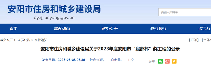 河南省安阳市住房和城乡建设局关于2023年度安阳市“殷都杯”奖工程的公示
