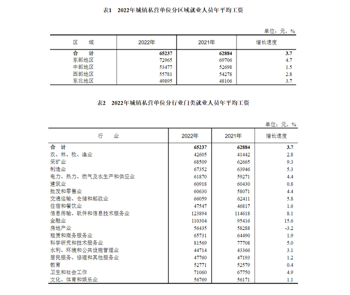 2022年全国城镇私营单位就业人员年平均工资为65237元,比上年增加2353元,名义增长[1]3.7%。扣除价格因素,2022年全国城镇私营单位就业人员年平均工资实际增长1.7%。
