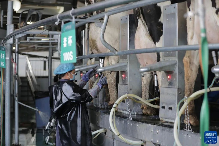 位于甘肃省武威市的这家现代化养牛场,奶牛戴上“运动项圈”后,呼吸数据、反刍频率、采食情况、行动步数等信息可以实时上传,让兽医随时掌握每头奶牛的产奶和健康状况,节省了大量人力物力;新式电子耳标,就像办了“二代身份证”,使奶牛身份识别与管理更加便捷,人工智能设备的应用让奶牛养殖管理效率得到大幅度提升。