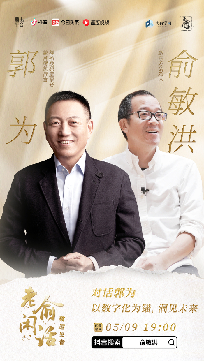 今天(5月9日)19:00,“老俞闲话”直播间,我将对话著名企业家郭为,我们将聊聊数字化,聊聊未来。感兴趣的朋友,可以参与进来。