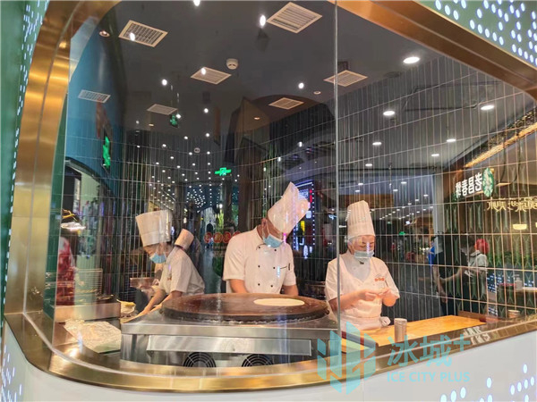 在学府凯德广场,一家主打东北春饼特色的老字号餐厅入口处,一面巨大的透明玻璃窗正对着商场廊道,透过这面玻璃窗,路过的人们可以清晰地看见东北春饼的制作流程。无独有偶,在哈西万达广场,一家主打酸菜鱼的餐厅,同样采取了这种晒厨房、晒工艺的模式。其实,类似这样的名厨亮灶在哈市各大商圈餐饮门店中已经非常普遍。
