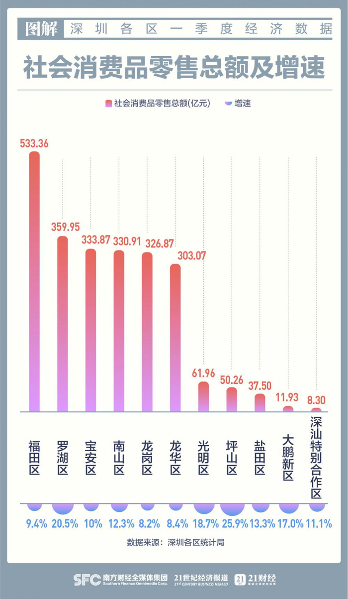 图解深圳11区一季度经济数据 新增两区单季GDP破千亿丨圳式开年“拼经济”