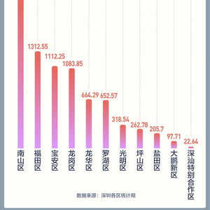 时隔3年,深圳“制造业立市”成效显现,一季度“千亿俱乐部”终于迎来两员工业强区——宝安区GDP达1112.25亿元,龙岗区GDP达1083.85亿元。