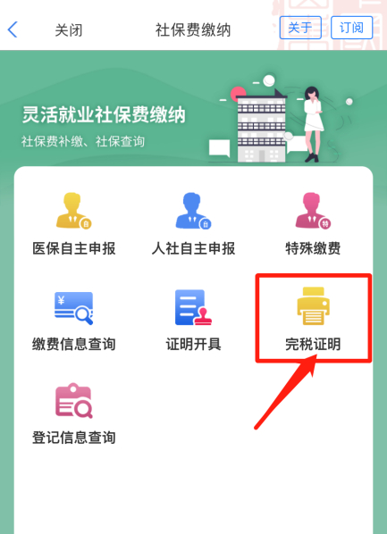 缴纳社保后,你还可以在“社保费缴纳-灵活就业”页面,选择开具完税证明。