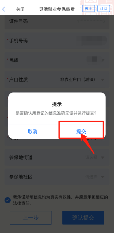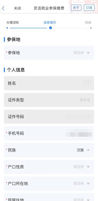 3、根据页面提示,选择参保地、户口性质、户口所在地、现居住地、学历等信息,核实信息后确认提交,完成参保登记;