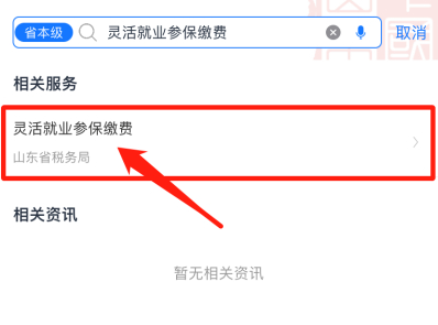 1、进入“爱山东”APP、支付宝、微信小程序,搜索“灵活就业参保缴费”进入服务;