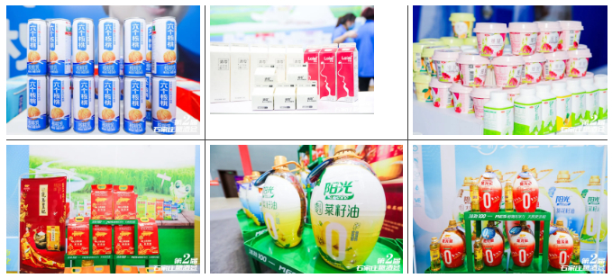 展会现场,酒类展区依然由浓香、清香、酱香等三大类白酒占据主要位置;食品饮料展区则以笨笨狗、良品铺子、君乐宝、希蒙、冰得宝、澳进等品牌领衔。