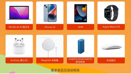 第一重购车礼:抽苹果大奖。买车是人生大事,期待车主开启平安、幸福的车生活,车展组委会将美好的祝福装进“苹果”送给所有购车者。展会期间,凡现场下单购车客户均可参加抽苹果大奖活动,奖品涵盖苹果笔记本macbook、iPhone14、iPad、Apple Watch SE、AirPods(第三代)、小米扫地机器人、妙控鼠标、小米有品投影仪、mophie powerstation移动电源、营地推车、Magsafe充电器、小米空气炸锅、苹果USB-C转闪电连接线、米家电动冲牙器、海天礼盒、苹果小礼盒等等,参与者100%有奖!最高奖价值近8000元。