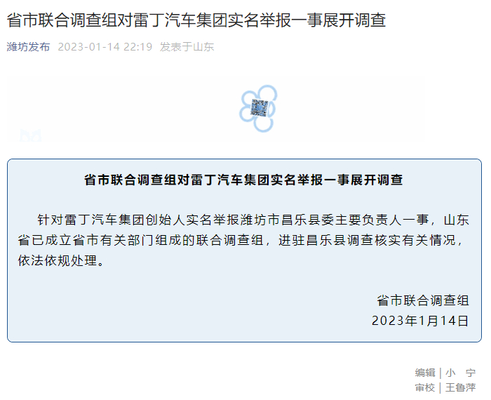 针对此事,当时山东省已成立省市有关部门组成的联合调查组,进驻昌乐县调查核实有关情况,依法依规处理。不过至今没有新的进展消息。