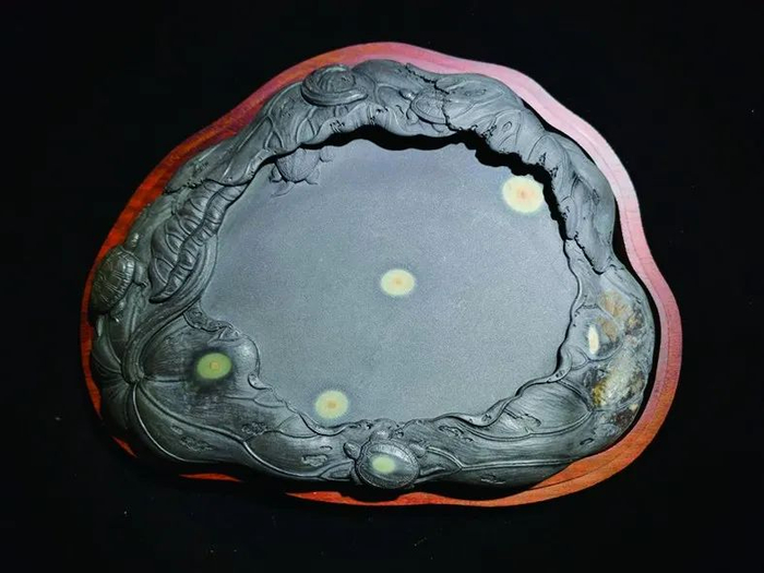 中国的四大名砚以端砚最为著名。端砚自唐朝初年开始生产,以石质坚实、润滑、细腻、娇嫩而驰名于世。端砚石产自烂柯山和北岭山一带,尤以老坑、麻子坑和坑仔岩三地的砚石为最佳。砚石多为青紫色、猪肝色、天青色,其上多有鱼脑冻、蕉叶白、青花、胭脂火捺、天青、翡翠、金银线、水纹等一种或数种奇妙的石品花纹。其中,以“碧晕重重”“如珠剖蚌、如日丽空”的石眼最珍贵。