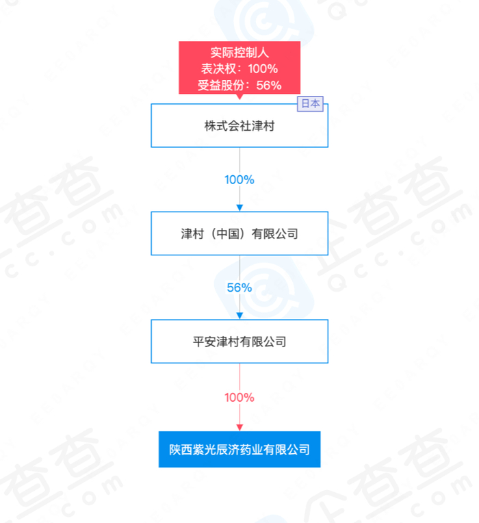 企查查信息显示,紫光辰济的收购已完成,公司股东已经变更为平安津村有限公司,持股率为100%。平安津村有限公司是津村与中国平安保险集团于2018年设立的合资公司。穿透股权,津村目前持有紫光辰济56%的股权。