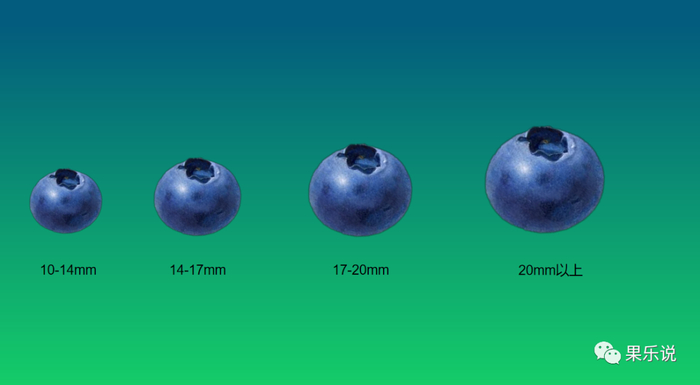 由于蓝莓本身的果型就是小巧玲珑的,一般单果重在0.5-2g左右,因为它长的小但果型端正,偏圆,所以一般在区分规格的时候以专门的果圈来做区分,大小级别分为:王(20mm以上),大(17-20mm),中(14-17mm),小(10-14mm),蓝莓一小盒净重约125g,大小的区分可以这样来理解,当一盒的果规格大小稳定在10-14mm的就是小果。