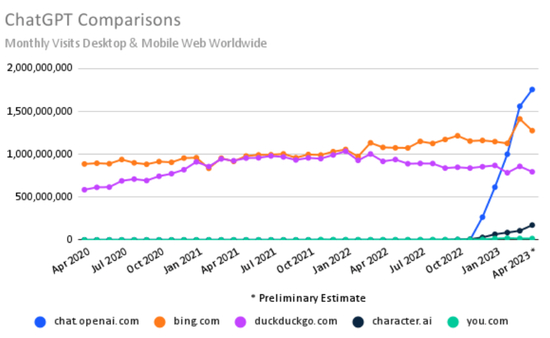 ChatGPT访问量创新高背后:流量增速斜率陡降 Bing也出现回调