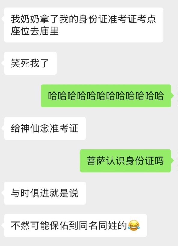 一位福建朋友,高考前,奶奶特地拿了她的身份证和准考证。