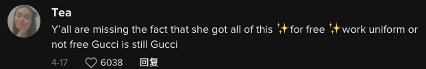 “重点是她拿到这些都是✨免费✨的!制服也罢,免费也好,Gucci还是那个Gucci!”