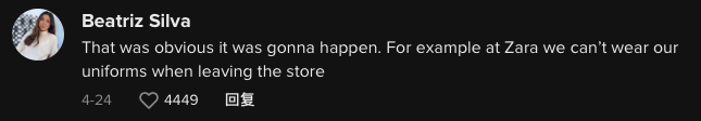 “这个结局一点不奇怪。比如在zara我们就有明确规定离开店铺不允许穿制服。”