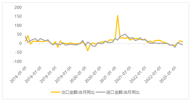按美元计,2023年4月出口同比增8.5%(Wind预期值6.4%,前值14.8%);进口同比-7.9%(Wind预期值-0.1%,前值-1.4%)。