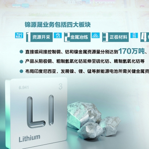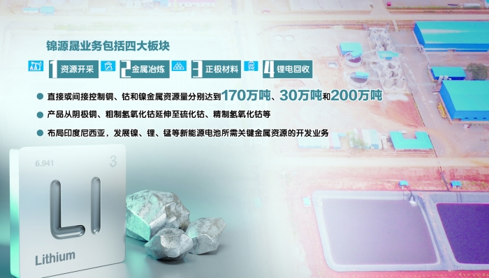 锦源晟官网显示,其业务包括资源开采、金属冶炼、正极材料和锂电回收四大板块。在资源开采方面,锦源晟在刚果(金)拥有多个大型铜、钴矿项目,直接或间接控制铜、钴和镍金属资源量分别达到170万吨、30万吨和200万吨;另外,锦源晟建立了多个铜、钴金属的冶炼加工产能,产品从阴极铜、粗制氢氧化钴延伸至硫化钴、精制氢氧化钴等。在正极材料方面,锦源晟在四川成都眉山建立四氧化三钴前驱体工厂,与上下游产业就近配套,并逐步布局三元前驱体产能。目前,锦源晟正在布局印度尼西亚,发展镍、锂、锰等新能源电池所需关键金属资源的开发业务,并利用优势辐射西部及海外动力电池市场。