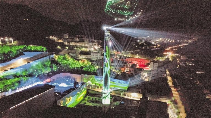 5月6日,立夏夜,贵州茅台酒厂厂区内,“光影茅台”项目正式启动,一时间,老烟囱上空流光璀璨,上千台无人机以夜空为幕,在美轮美奂的灯光色彩配合下,一幅幅瑰丽的光影画卷在苍穹梦幻铺开,在星光交辉中切换。