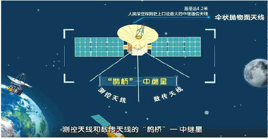 “鹊桥”搭载了一口展开后直径达4.2米的伞状天线,是人类深空探测器发射史上携带的最大口径通信天线。
