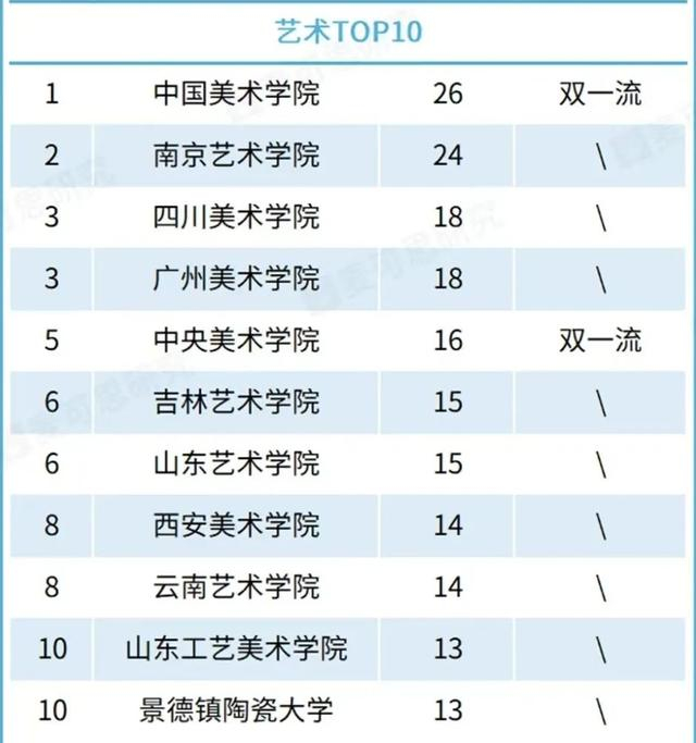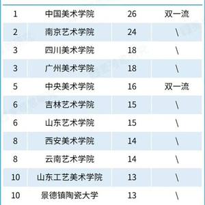 近期,麦可思研究对700余所高校的国家级一流本科专业数量进行了统计并发布了相关排名,其中,吉林艺术学院在全国艺术院校中入围十强,高居第六位。