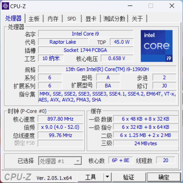 在CPU-Z基准测试中,这颗处理器的单核分数为784.2分,多核分数为8076.9分,在使用H标压处理器的轻薄本产品中已经是天花板级别的水平了,尤其是单核能力非常突出。