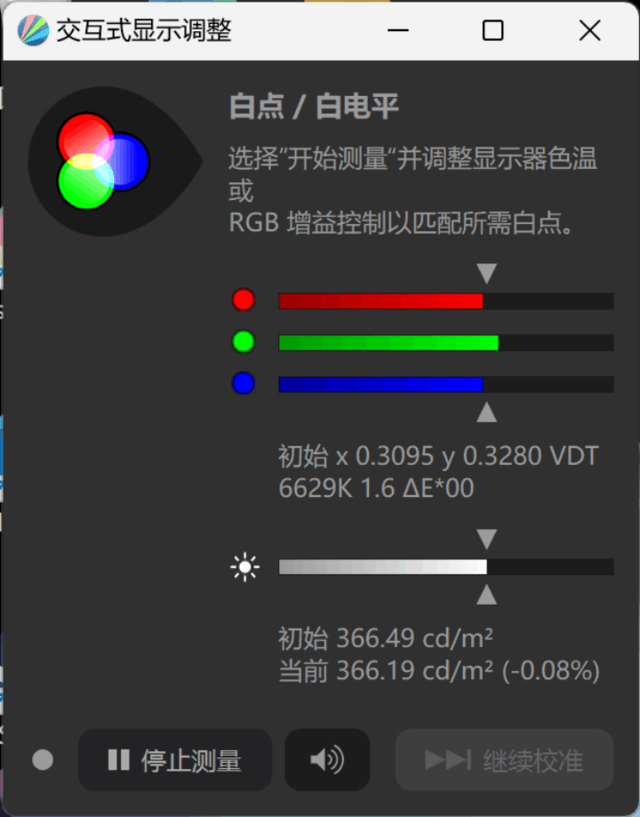 亮度方面,这块屏幕在SDR模式下,测得的最大亮度为366.49尼特,完全可以满足日常使用需求。