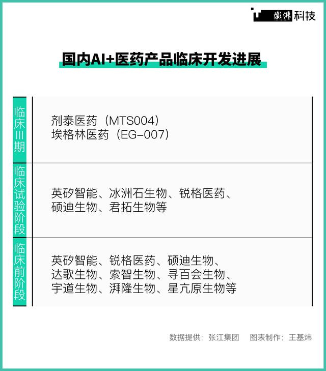 2021年10月,在陈凯先、蒋华良、饶子和三位中国科学院院士的倡议下,张江AI新药联盟应运而生。到2025年,张江药谷“AI智药生态”有望集聚300家活跃机构、30个创新联合体和30个赋能平台,AI有望助力每年新增30条一类新药管线(pipeline,指药企一批正处开发阶段的药物,包括临床前、临床研究等)。