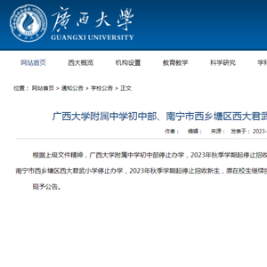 重磅!广西大学附属中学初中部、西大君武小学停止办学