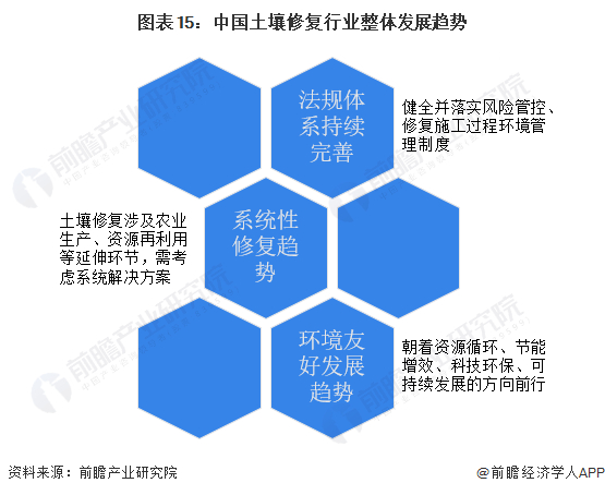 未来,中国土壤修复行业的发展将呈现完善法规体系、土壤修复系统性程度提高以及适应环境友好型发展趋势。