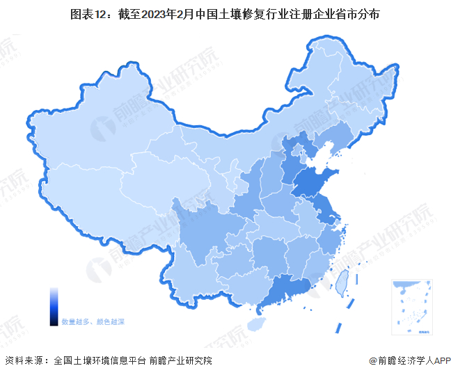 全国已在建设用地土壤污染风险管控和修复从业单位和个人执业情况信用记录系统注册的7503家从业单位中,分布在山东、广东、江苏级河北等地区土壤修复企业数量较多,其中,山东省已在系统注册土壤修复企业数量达711家,广东和江苏均超过600家。
