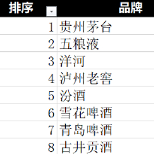 据榜单显示,除洋河外,贵州茅台、五粮液、泸州老窖、汾酒、古井贡酒也榜上有名。啤酒品类中,雪花啤酒、青岛啤酒成功上榜。