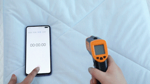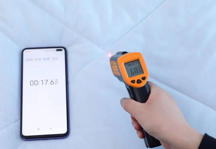 用挂烫机对被子加热10s左右,让它的即时温度达到68℃。