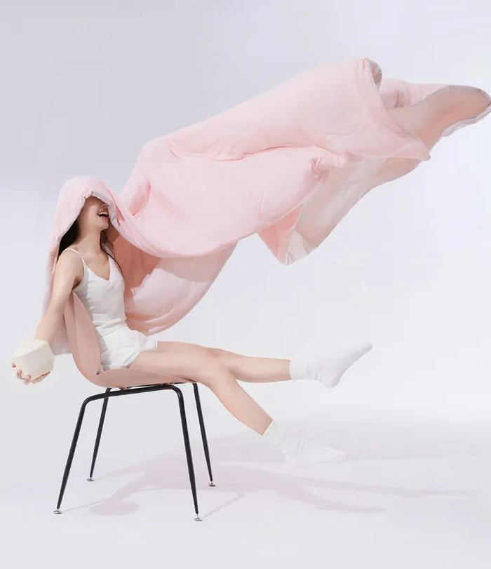 填充物选用的是轻柔透气的聚酯纤维,吸湿透气纤维,透气能力很优秀,盖着被子,像云朵一样轻盈不压身。