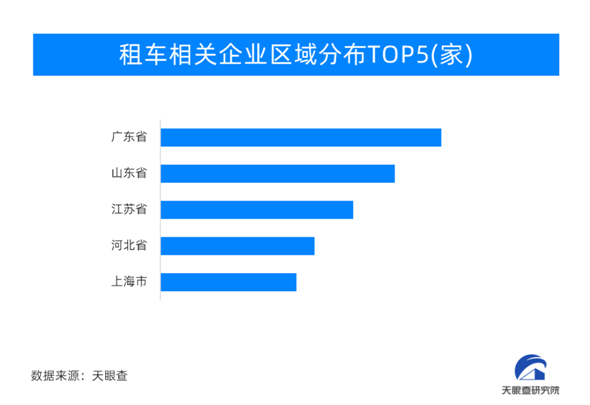 同时,根据天眼查数据,广东、山东、江苏、河北、上海成为拥有租车公司数量前五的省份,从分布图可以看出,省份常驻人口数量多少、经济发展程度、旅游资源丰富程度是主要的决定因素。