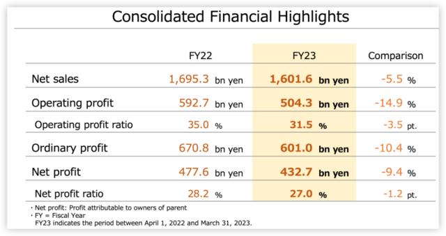 5月9日晚间,日本游戏巨头任天堂发布截至2023年3月底的年度业绩。财报显示,任天堂期内营收1.6万亿日元(约合1200亿美元),同比下滑5.5%,净利润4327亿日元,同比下滑9%。