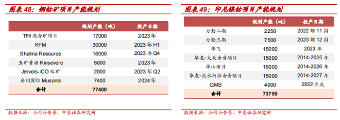 3)在建项目或将放缓:受低钴价影响,Shalina Resource公司Mutoshi项目规划1.6万吨钴产能,原计划2020年投产,该项目暂停,目前已恢复,预计将于2023年三季度之前投产。