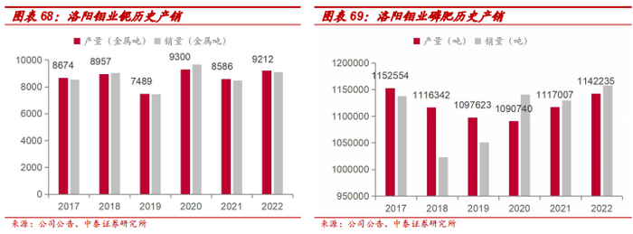 铌磷板块,2016年收购巴西铌磷业务,具有铌资源量约202万吨、磷肥资源量约8191万吨,成为全球第二大铌生产商、巴西第二大磷生产商,2022年铌产量9212金属吨,磷肥产量114万吨;规划2023年铌产量0.84-1.00万金属吨、磷肥产量105-125万吨