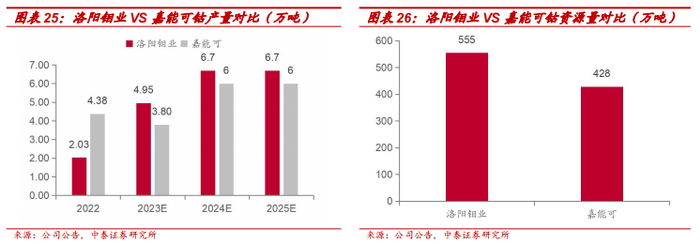 公司跃为全球第一大钴生产商。TFM和KFM均为全球最为优质的铜钴项目之一,尤其KFM钴品位达到1%以上,高于嘉能可的Mutanda以及Katanga项目。KFM与TFM铜钴矿区域位置邻近,具有较好的协同效应,扩产完成后,公司钴产能将达到约6.7万吨,超过嘉能可2022年4.38万吨钴产量,成为全球第一钴生产商;公司铜产能将超过54万吨以上,约占中国铜业生产巨头紫金矿业2022年产量的65%。