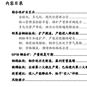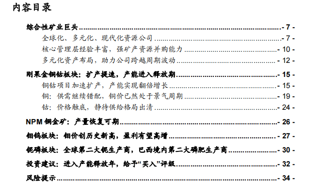 风险提示事件:产品价格波动对公司业绩变动带来的风险、产能释放不及预期、行业景气不及预期、海外矿业投资政治风险、需求测算偏差风险、研究报告使用的公开资料可能存在信息滞后或更新不及时的风险等。