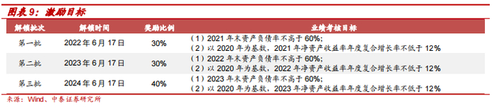 实施员工持股计划,彰显长期发展信心。2021年5月,公司实施2021年第一期员工持股计划,购买二级市场4851万股股份以2元/股的价格授予给核心员工。股权依据考核结果分三期分配,每期分配比例分别为30%、30%和40%,业绩考核目标为2021-2023年的年末资产负债率均不高于60%,净资产收益率年度复合增速不低于12%。公司员工持股计划第一个锁定期已于 2022年6月17日届满,业绩考核目标达成。