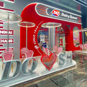 DQ也针对不同市场特点推出了重点城市的形象店、标准店、高人流区的小型店、特殊商圈(如机场、高铁站、高速服务区等)店4种店型。那些面积在100平方米左右的形象店会用以打造联名活动等,售卖的产品结构会覆盖更多品类,而面积在15-30平方米左右的小型店铺则重点售卖冰淇淋。