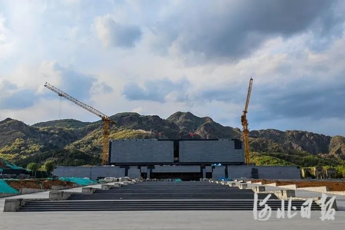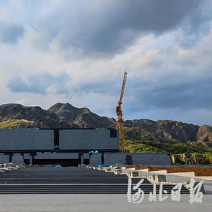 5月1日,走进山海关中国长城博物馆建设现场,施工人员正在有序进行安装展厅背板、玻璃幕墙等作业。该博物馆是长城国家文化公园建设的重点工程,目前已进入装修布展阶段。